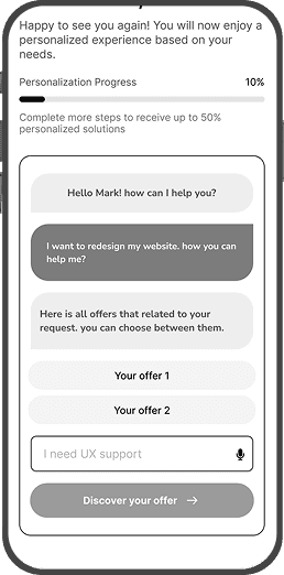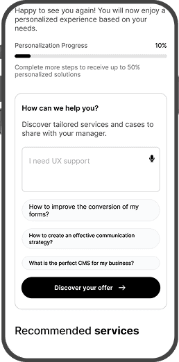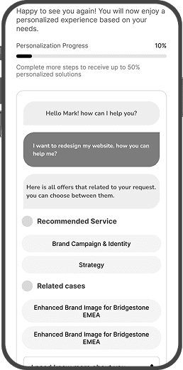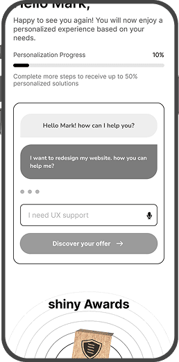 With a personalized homepage (10%) from the very beginning , users are already one step closer to finding what they need. As they use an AI search box, it can make even more relevant recommendations. We assume that this step-by-step approach helps users feel comfortable and not overwhelmed or overloaded by information, and it builds trust, which leads to higher engagement in the end.