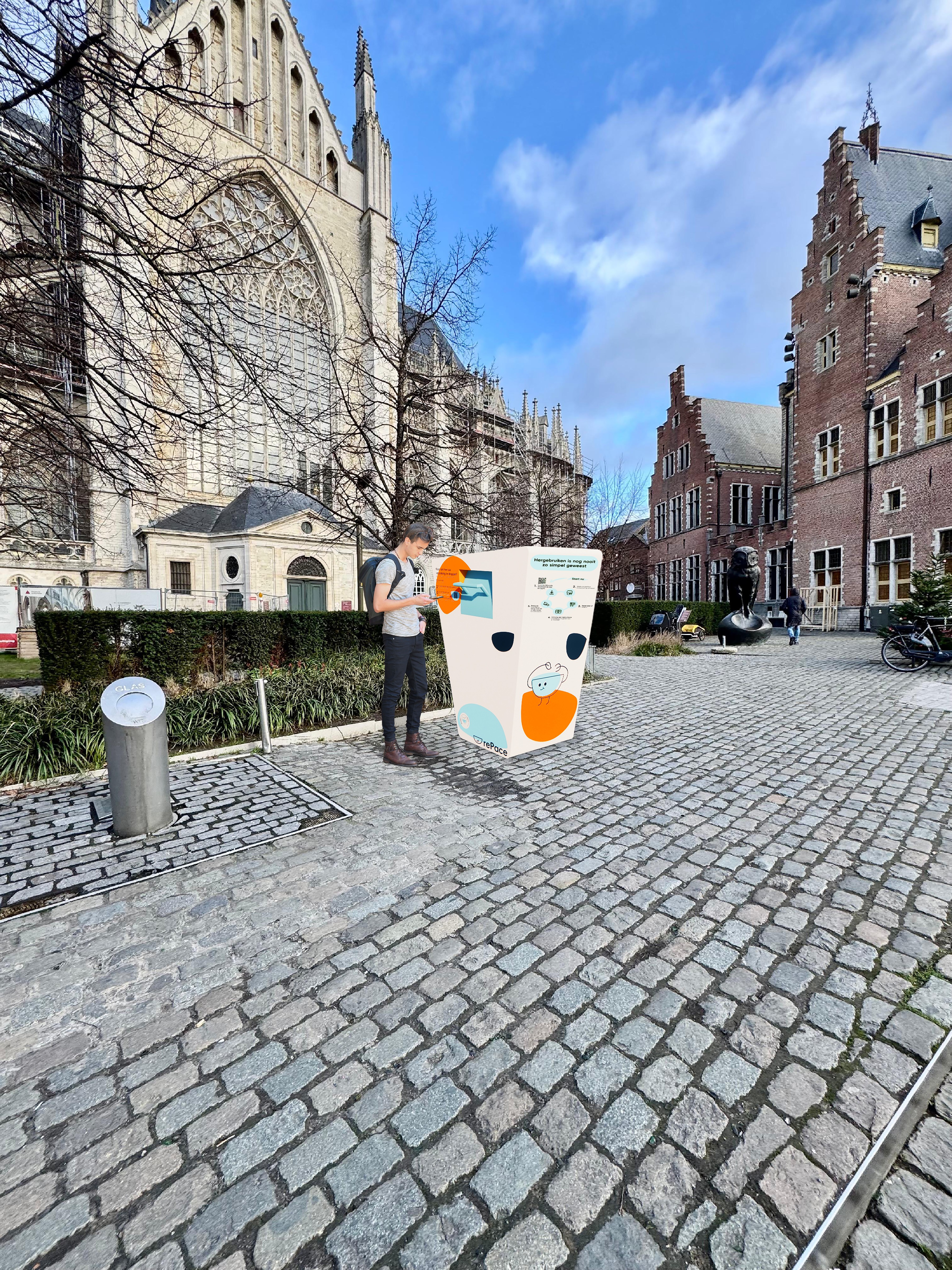 "The clients, the service providers FutureProof and Red-Use, have a clear ambition to scale up the system of reusable packages. Their goal is to make it economically viable within the city of Mechelen and across the rest of Flanders. They believe that a generic collection point, an open, physical collective system in the form of a collection bin, is a key enabler in this system. Their idea is to explore how this collection box can be integrated into their current system, taking into account its location and the roles of various stakeholders. "