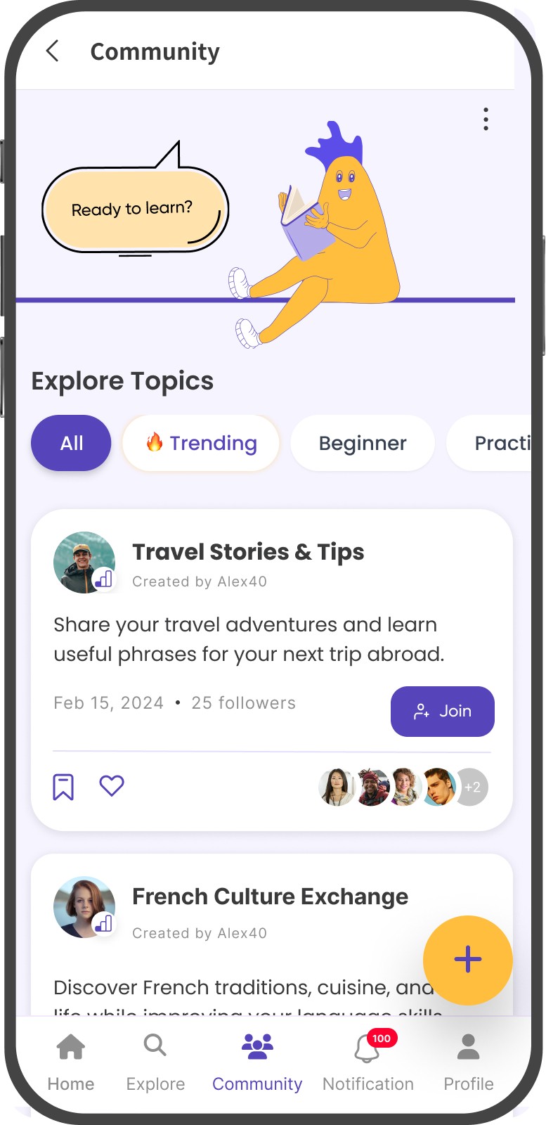 By organising content into clear, discoverable topics and interest-based recommendations, learners can easily find relevant conversations and continue their journey with confidence.